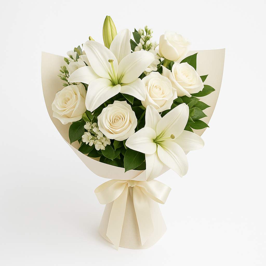 Inspirado en la elegancia clásica de los jardines italianos, el Arreglo Florencia con Lirios es una joya floral que irradia serenidad, belleza y distinción. Este sofisticado diseño combina lirios blancos de tallo largo con delicadas flores complementarias, formando una composición armoniosa que captura miradas y emociones.